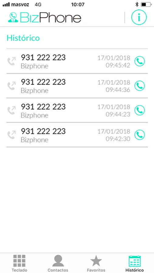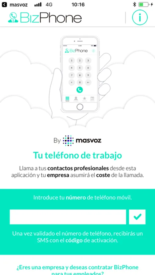 Utilizar BizPhone es extremadamente sencillo: tras descargar la aplicación, el empleado tendrá que validar su número de teléfono móvil e inmediatamente podrá podrá empezar a llamar.