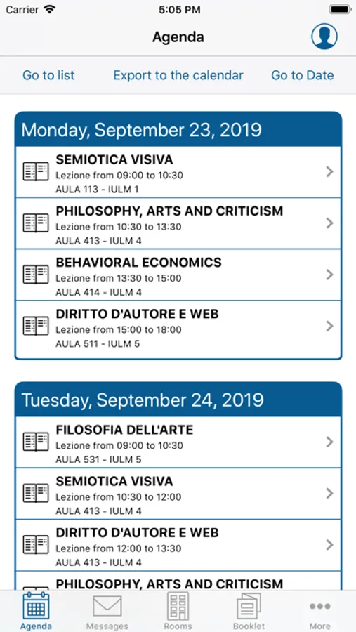 Con IULM Lezioni è possibile avere sul proprio dispositivo iOS: