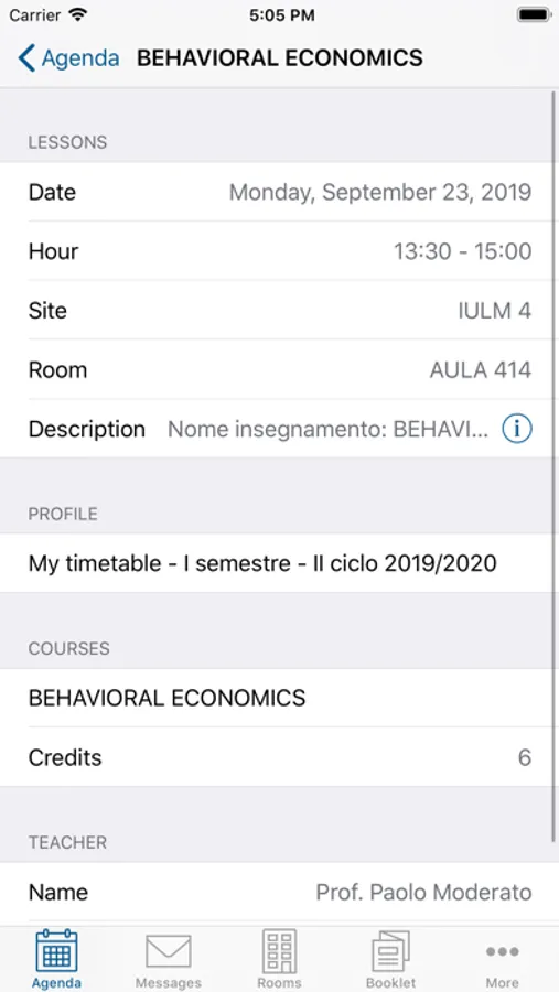 - Descrizione dettagliata delle lezioni e degli appelli d'esame con riferimenti ai docenti.