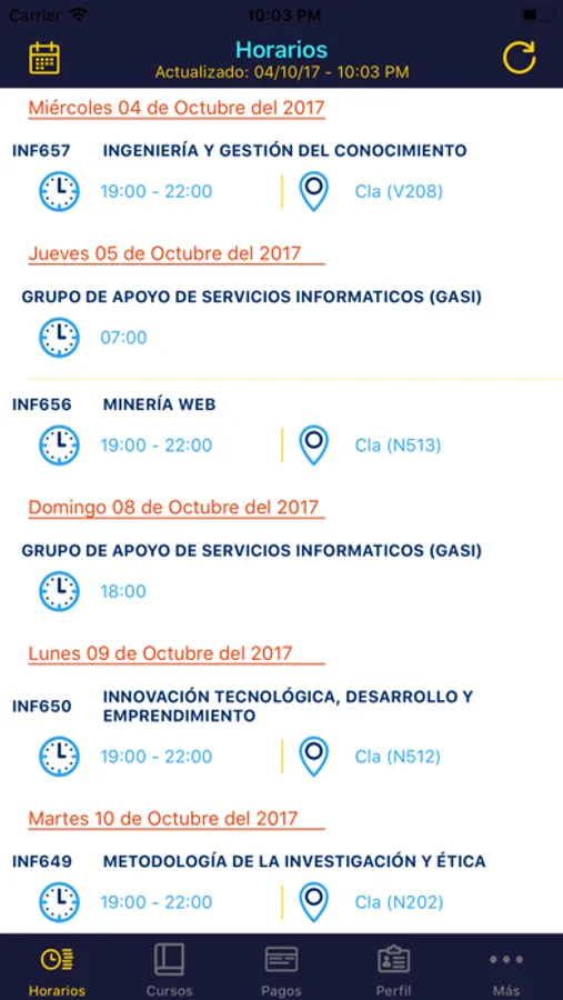 - Acceder a tu matrícula: sesiones de cursos, horarios y aulas. También a las recuperaciones que tu unidad académica haya programado y registrado.