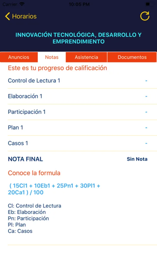 - Acceder a tus notas parciales, las fórmulas y tus notas finales del ciclo académico actual.