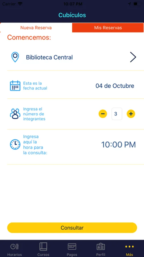 - Registrar reservas de ambientes de estudio (cubículos) en varias bibliotecas y edificios PUCP.