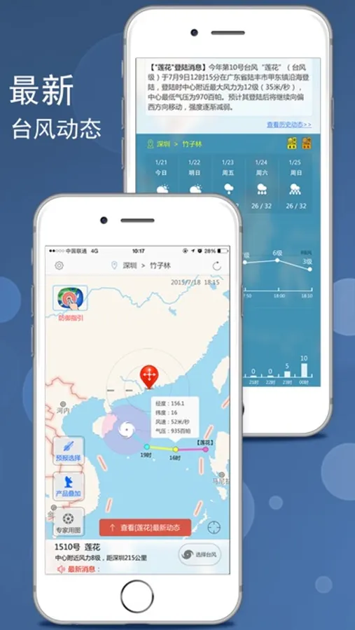 台风是深圳市气象局开发的专业台风服务软件,台风去哪了?你可以提前知道台风信息,你也可以通过我们的软件了解到最新的台风动态信息,及时做好防御,安排出行。