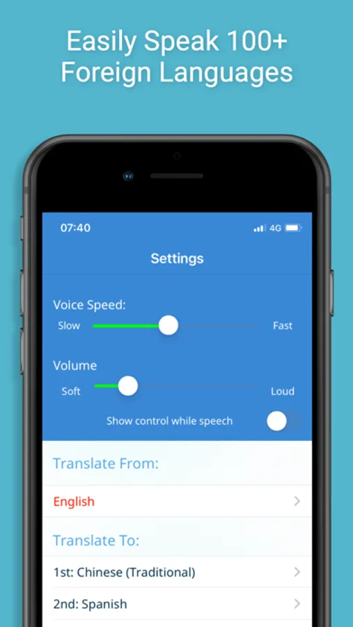 Just speak with your own voice, Multi Translate will convert it into text then translate/interpret, after which you can listen to the pronunciation for each language, even when your device is mute!