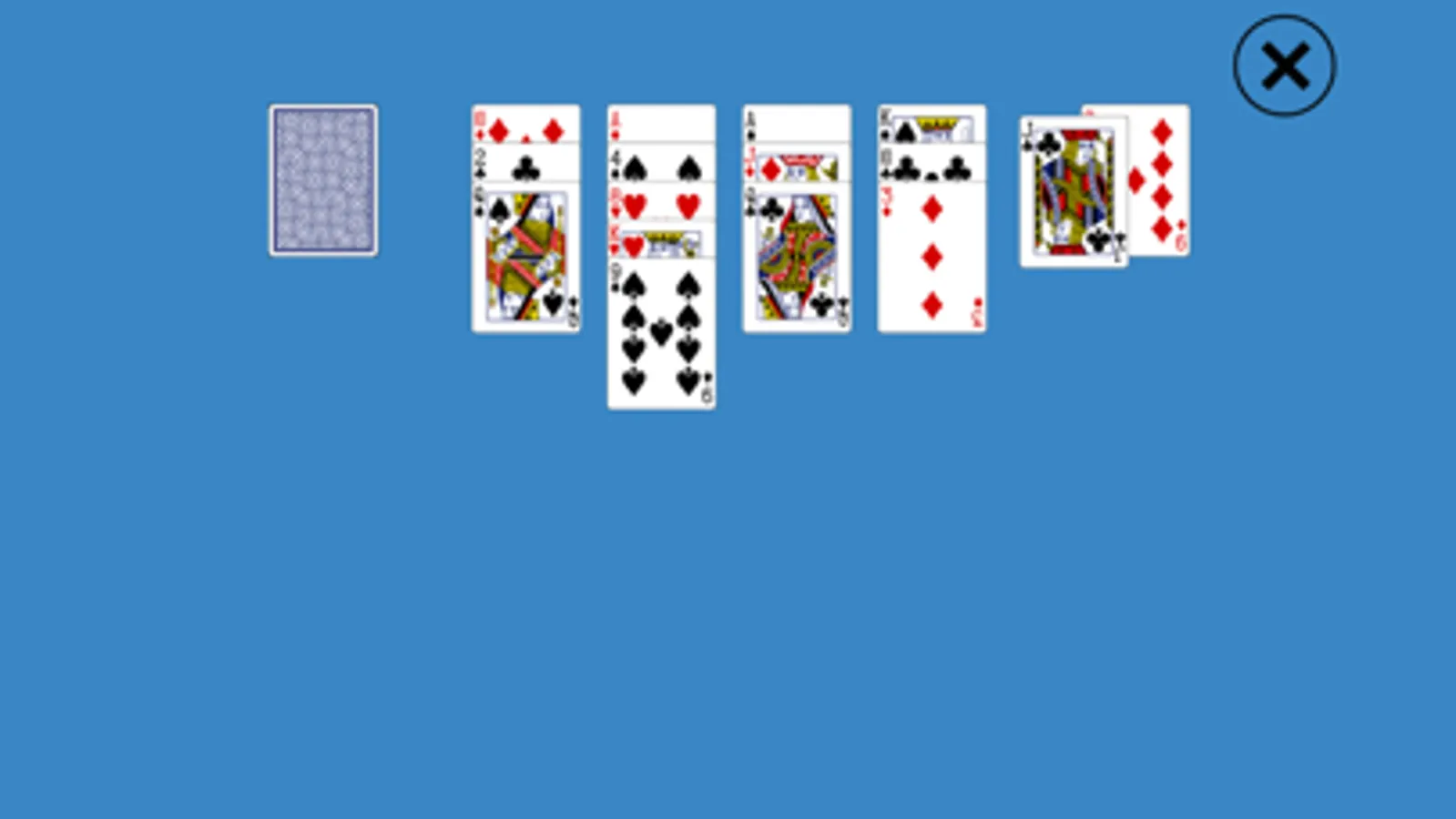 Only the top card of each pile is free to play.