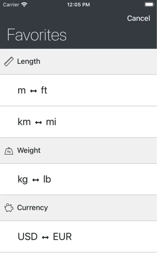 Doing multiple types of conversion and you need to switch easily between them? Welcome to HEAVEN. Add your FAVORITE conversions and they will be one touch away... literally!