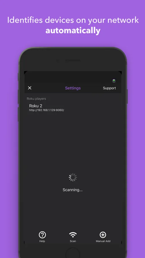 Roku Remote 7 automatically scans your devices connected to the network, with automatic configuration. Just select which device you want to control, and it just works.