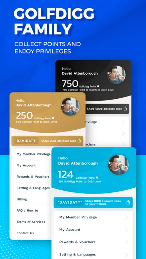 - Collect Golfdigg Points to upgrade your membership and unlock even more privileges!