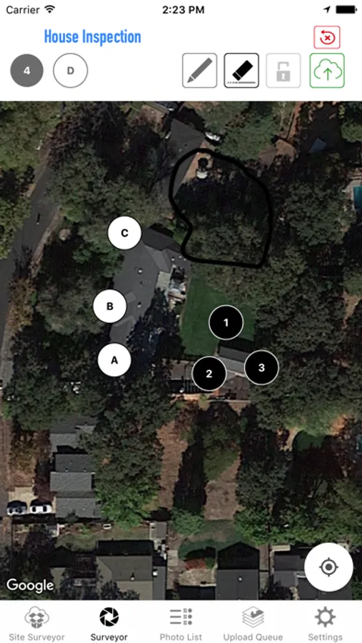Step 5. After all pictures are taken, save Screen Capture denoting photo locations. The screen capture along with a google earth placemark (kml) will upload to dropbox.