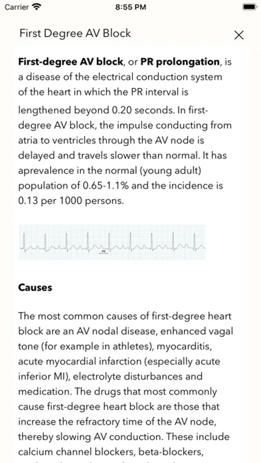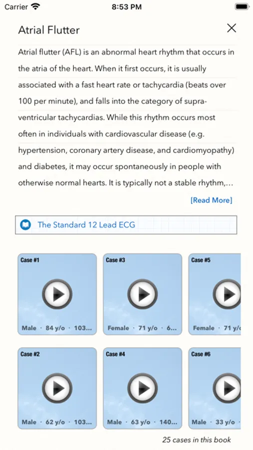 This app allows you to view ECG recordings in real time demonstrating a wide range of different cardiac abnormalities. You can also read concise explanations of how each abnormality manifests itself in ECG findings. The ability to view these ECG recordings as often as desired makes this a valuable tool for mastering the nuances of ECG interpretation.