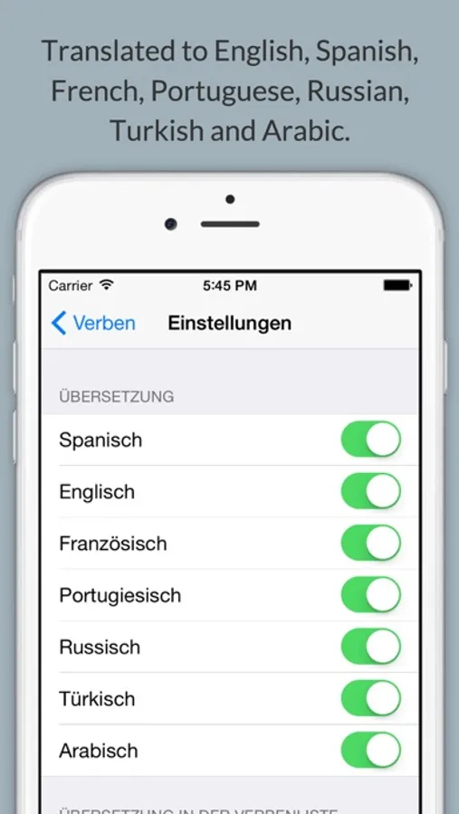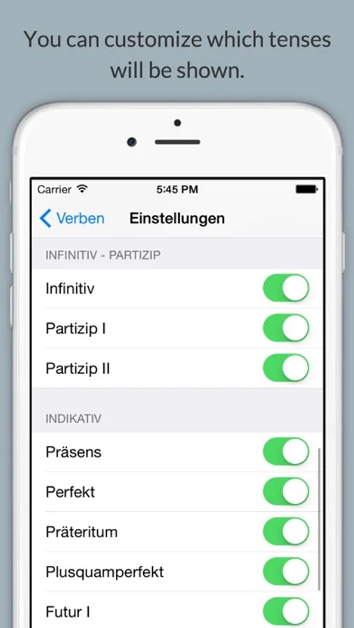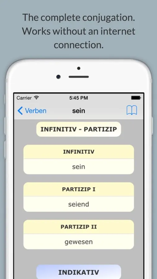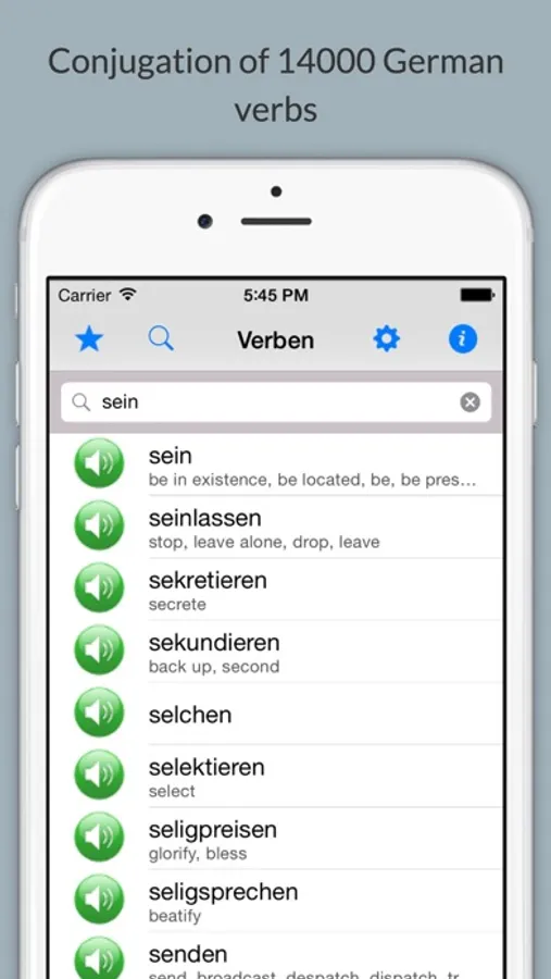 • Search in all tenses. (For example: You will find the verb "sein" looking for "bin".)