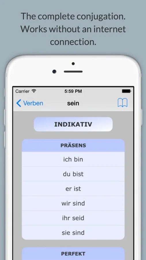 Verben Lite offers the complete conjugation of 14000 German verbs.