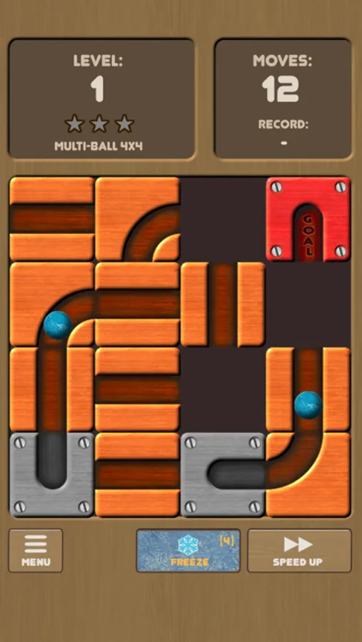 Guide the white ball to the red GOAL block by moving the slots. Unroll Me is the smash hit puzzle game that is easy to learn but hard to master. Can you solve it?