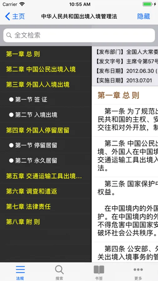 收录1000多部常用中华人民共和国法律法规及司法解释等,分类浏览,便捷操作,快速索引定位,全文搜索,书签收藏!