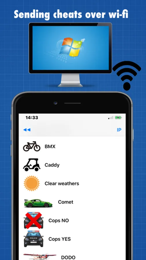 Just select cheat on your IOS Device and cheat is activated in the game on Windows PC!