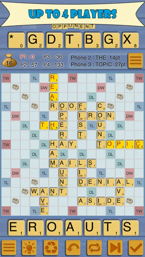 You can play against 3 phone players or 3 friends of yours in this words game.
