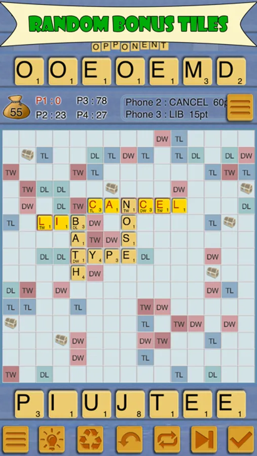 Tired of stumbling across cheaters or waiting hours for your online opponent to play on Scrabble, Words with friends or Wordfeud? Play against your phone.