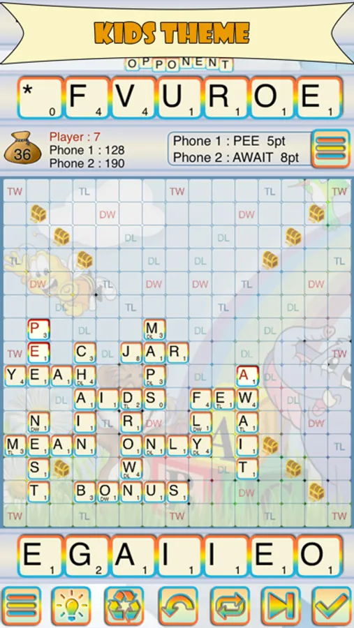 This word game is a great time killer for all fans of board games and strategy games. It is also an educational game that will allow kids (and adults :-) ) to improve their spelling and vocabulary.