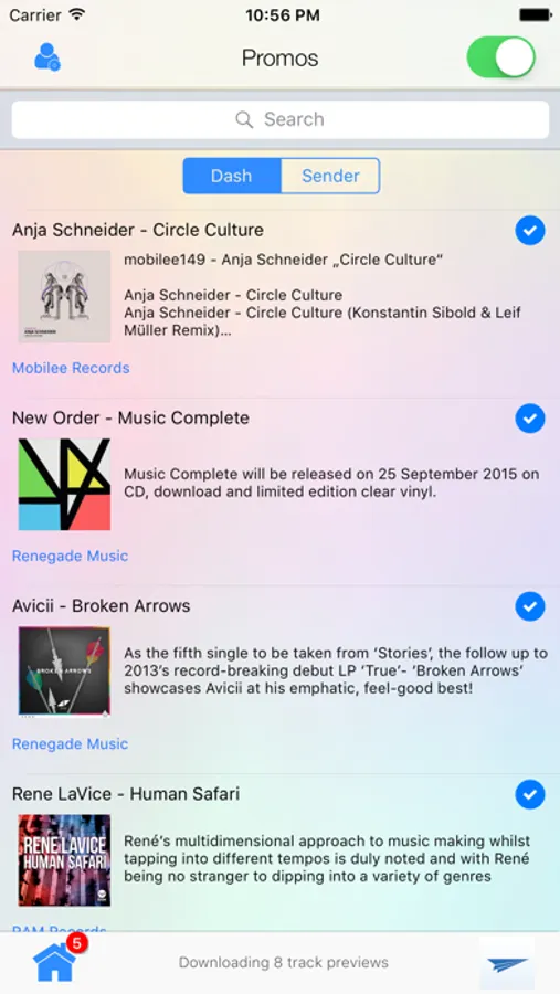 + Auto-sync - automatically downloads your promos including artwork, press-release and music