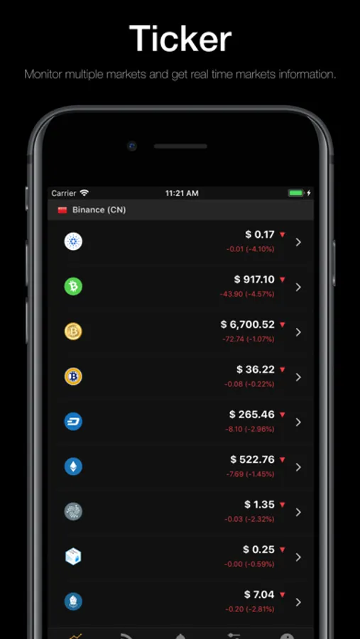 Stay informed about the Bitcoin (BTC), Litecoin (LTC), IOTA (IOT), Bitcoin Cash (BCH), Bitcoin Gold (BTG), Dash (DSH), Decred (DCR), Monero (XMR), ZCash (ZEC) and Ethereum (ETH) prices with real time informations, exclusive charts (1d/1w/1m), price alerts and widget.