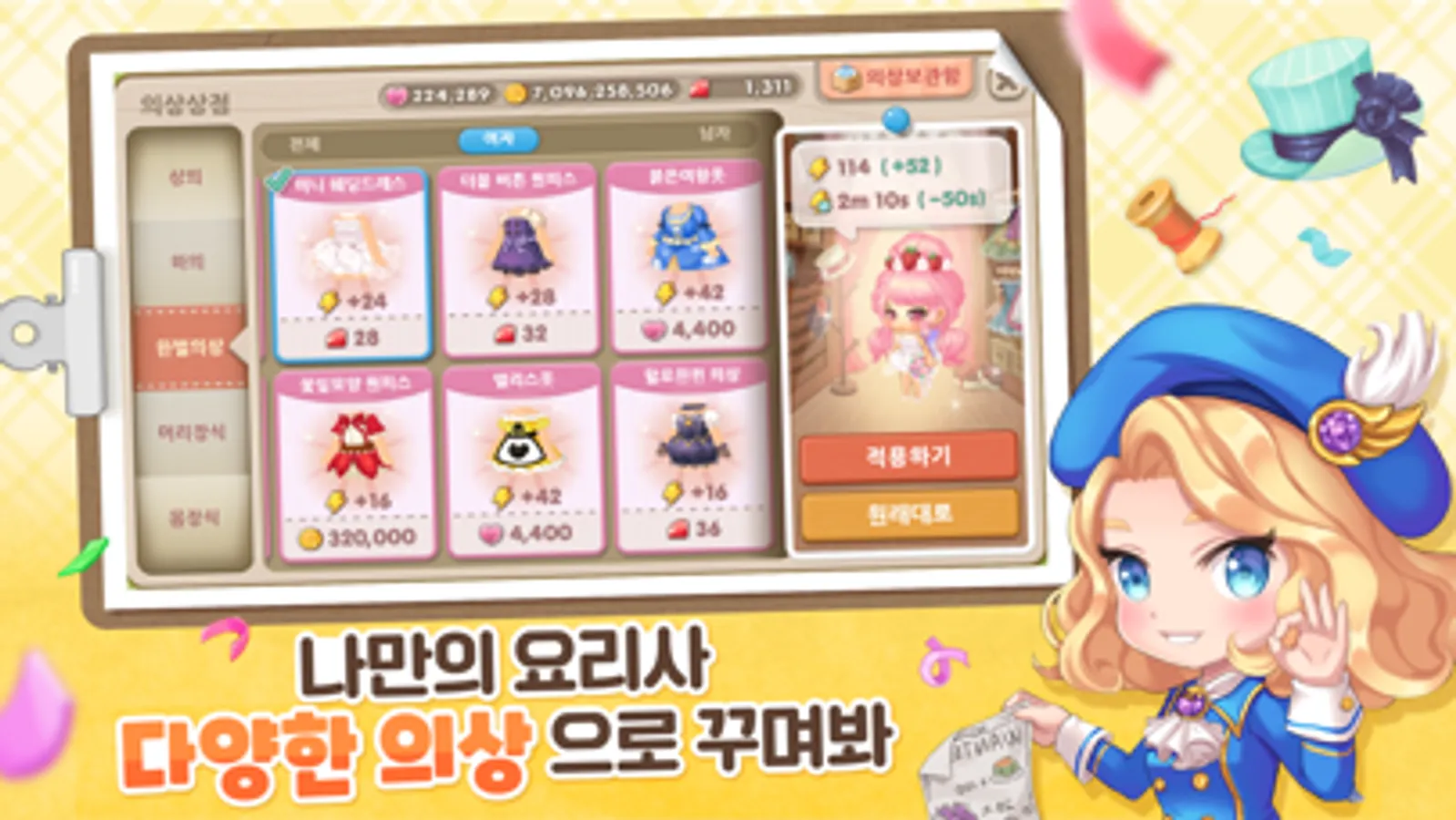 - 다양한 요리만큼이나 풍성한 콘텐츠, 개성만점 나만의 셰프(요리사)를 꾸미자!