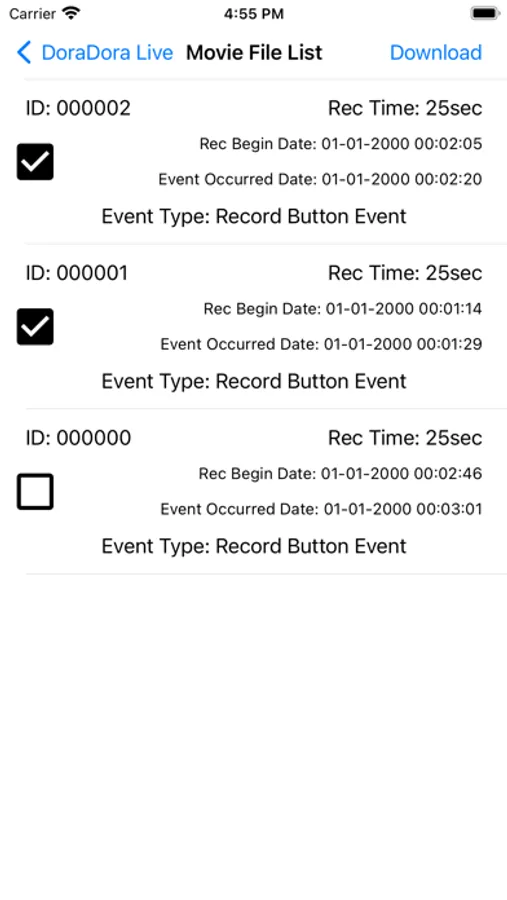 You can select and download any movies from the list of movies recorded by "Doradora".