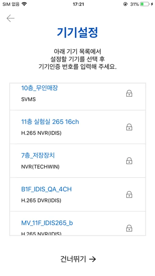 해당 어플리케이션은 에스원의 영상제품을 구매해야 사용가능합니다. (구매문의 S1, 1588-3112)