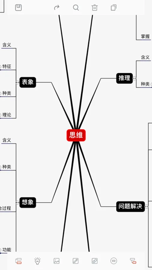 《3A 思维导图》是美观的。《3A 思维导图》的按钮图标都是精心设计,和文本字体颜色统一协调,整体有淡雅简洁的美,给用户提供沉浸式思考的氛围。