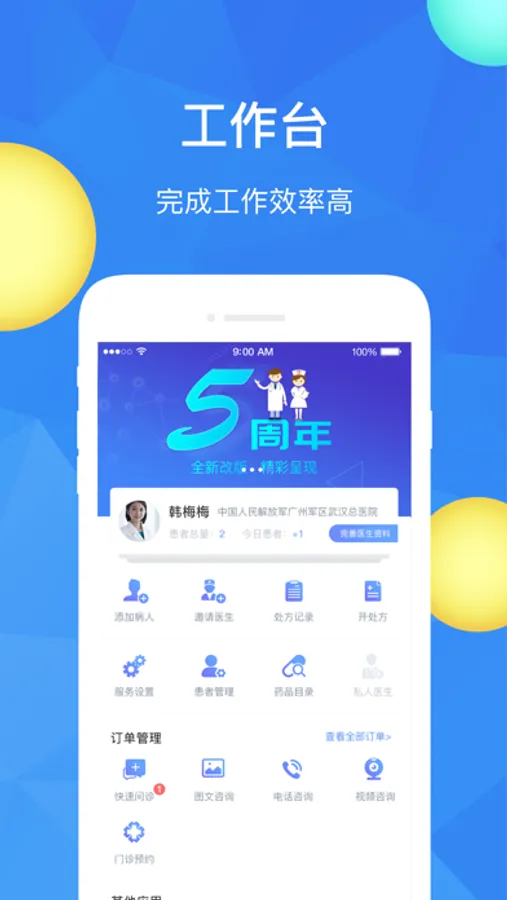 医生通过该平台可以为在线患者提供在线问诊、电子处方、门诊预约等健康医疗服务,与专家同行进行密切交流,参加行业会议,分享临床经验,提升学术水平与影响力。