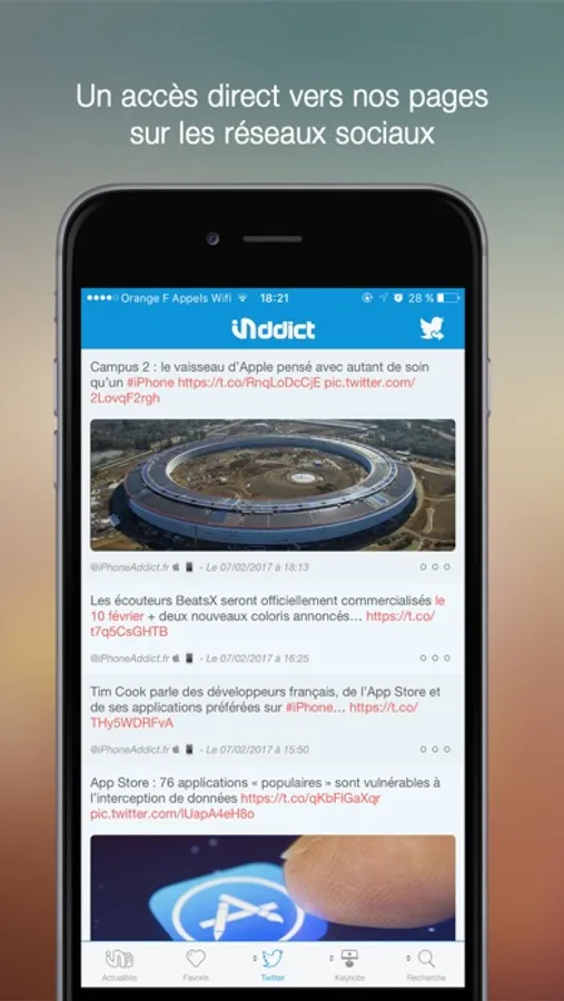 Grâce à l’application iAddict vous pourrez recevoir sur votre iPhone, iPod Touch, et iPad et Apple Watch les derniers articles publiés sur le site iPhoneAddict.fr, réagir en postant des commentaires, et partager vos articles préférés.