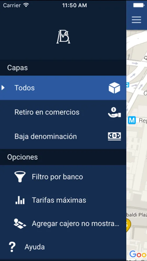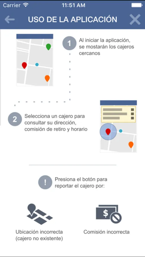 Aplicación que permite la ubicación de cajeros automáticos y consulta de comisiones que cobran los bancos operadores a los tarjetahabientes de otros bancos.