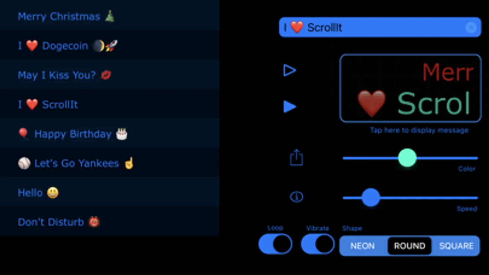 What adds to the fun is that ScrollIt offers easy-to-type emoticons right from the same keyboard. Make your text even more fun to watch!