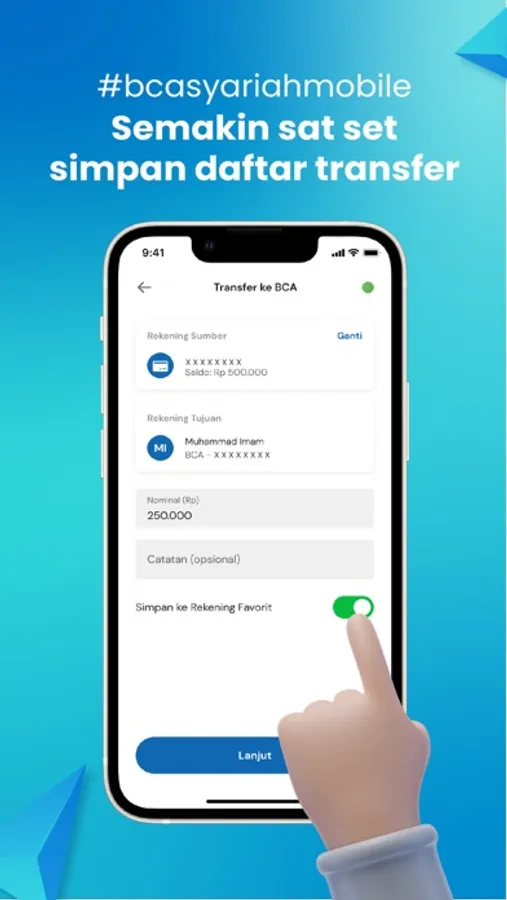 Enjoy one app to access all of your personal portfolios in BCA Syariah anytime and anywhere, including saving account, current account, time deposit, and even your financing account with BCA Syariah Mobile.