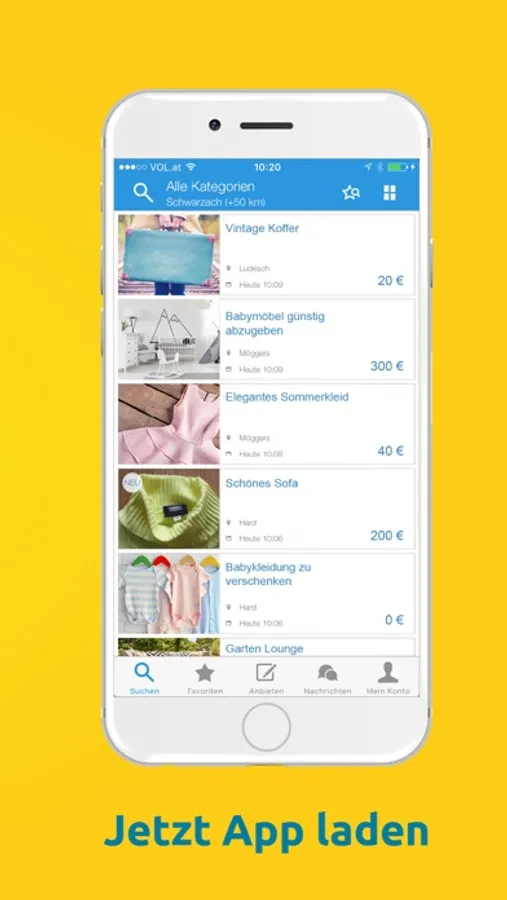 Du suchst nach etwas Bestimmtem? Dann verwende die „Suche“ und stöbere in der Listen- oder der Bildansicht. Tausende Artikel warten auf dich. Freu dich auf die Schnäppchenjagd und finde die besten Angebote Vorarlbergs. Mit der ländleanzeiger.at App für dein Smartphone.