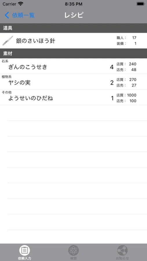 ドラゴンクエストX の道具鍛冶レシピが登録されています。