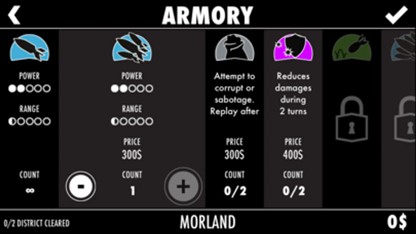 In single-player mode, more cities you clear, the more you earn money in order to buy new weapons, small missiles to thermonuclear weapon through laser and napalm and the more you become powerful in online battles!