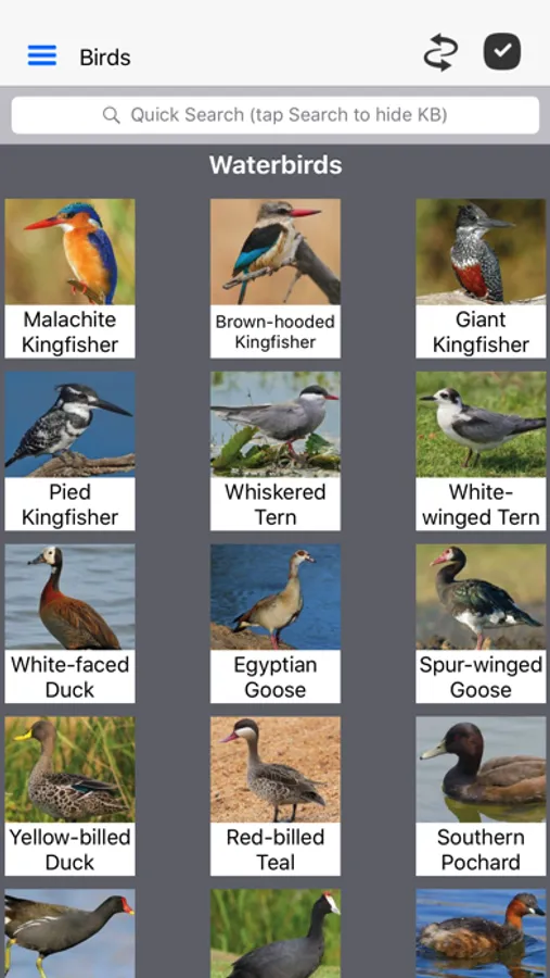 ● A personal list that stores your bird sightings saved to the device and can be exported via email.