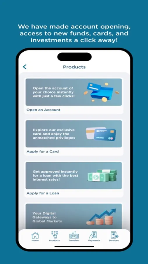 Start your digital banking journey simply by downloading the app and signing up on it. No filling up forms, no waiting for passwords.