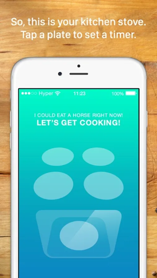 Our kitchen timer gives you a simple and clean layout over your kitchen stove. Four hot plates on top and an oven in the front. To set a timer you simply tap it, swipe it. Boom! You’re done! It´s really that simple!