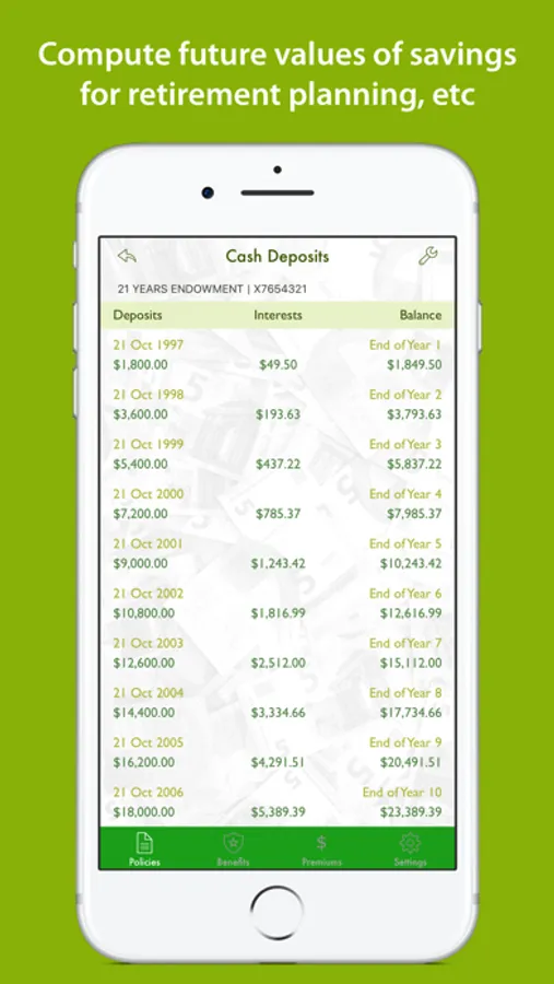 - Equipped with compound interest and compound reversionary bonus (for traditional policies) projections to plan for retirement or other saving goals.