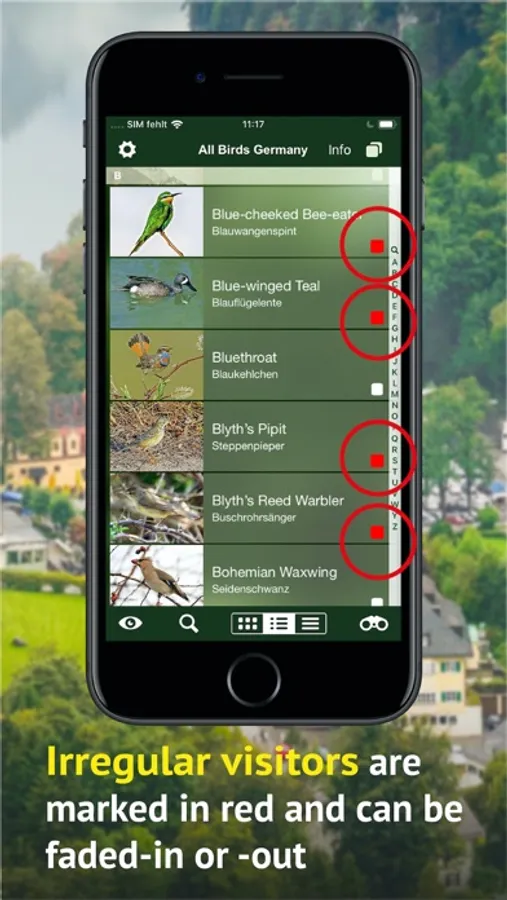 Of decisive help here are the qualitatively high-class large-scale images which show all bird species in their natural environment and, amongst others, originate from renowned photographers of the wildlife agency SUNBIRD IMAGES. The pictures have been chosen from thousands in order to allow the most reliable identification. The choice of photos is essential for identification: Bird pictures which only show the bird from front, like it is the case for many of the sloppily developed apps on the market today, are of little use for birders.