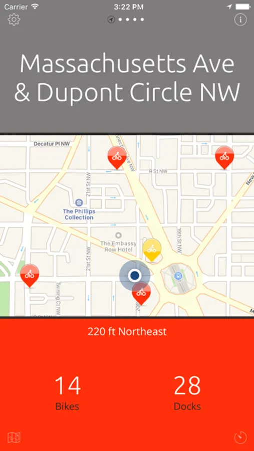 D.C. Bikes is a simple and easy-to-use App that helps you locate the closest Capital Bike Share™ docking station. With one tap you can find the closest Capital Bike Share station, how far away it is and in which direction, and how many available bikes and docks it currently has.