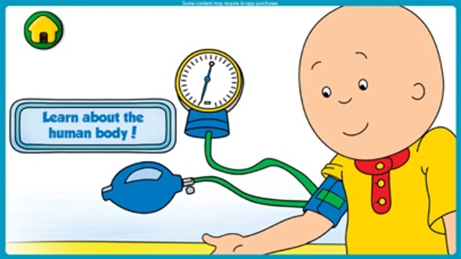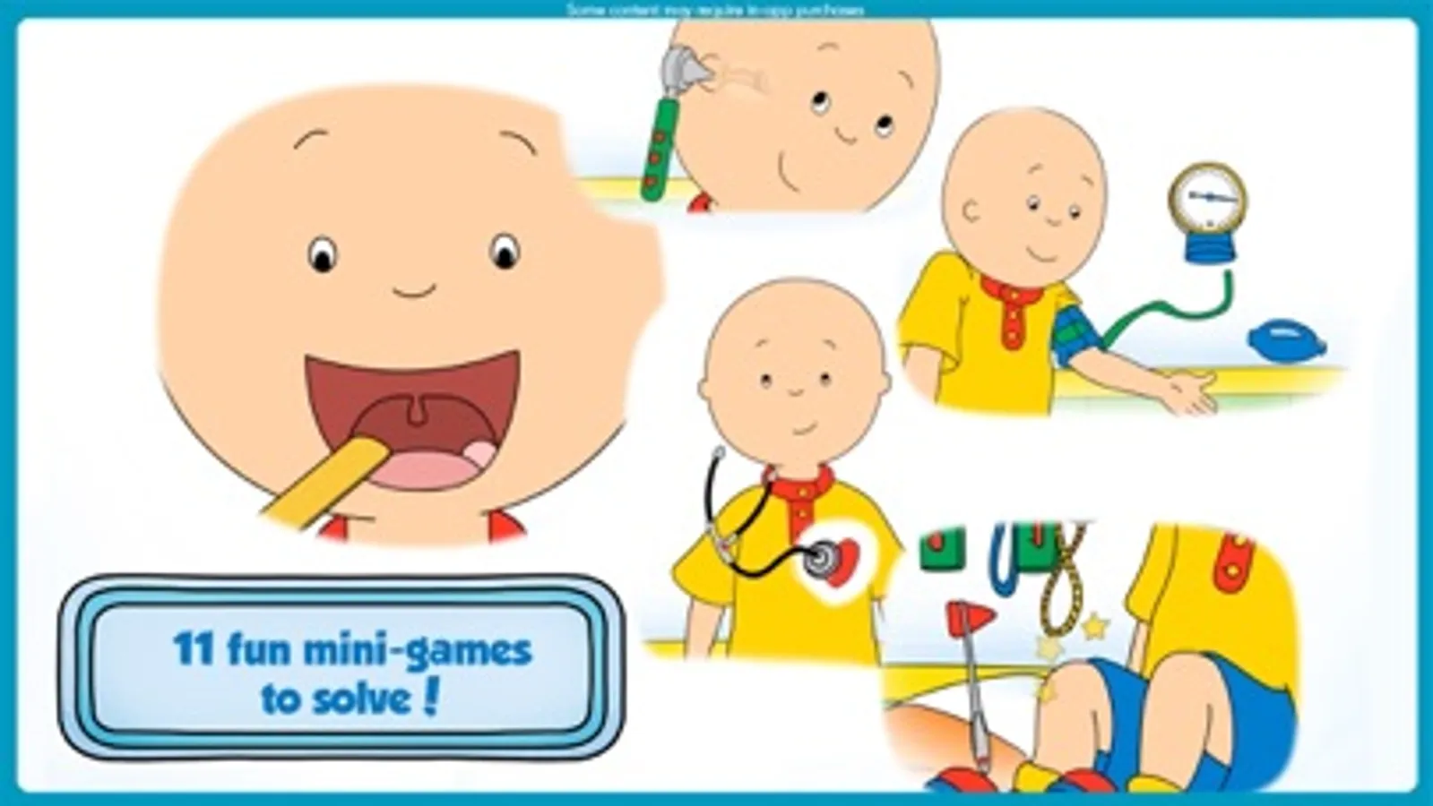 Budge Studios™ presents Caillou Check Up! Go to the doctor’s office with Caillou and solve fun mini-games that teach kids all about the human body. Check his height and weight, test his vision, play with cool doctor tools such a stethoscope, and lots more!