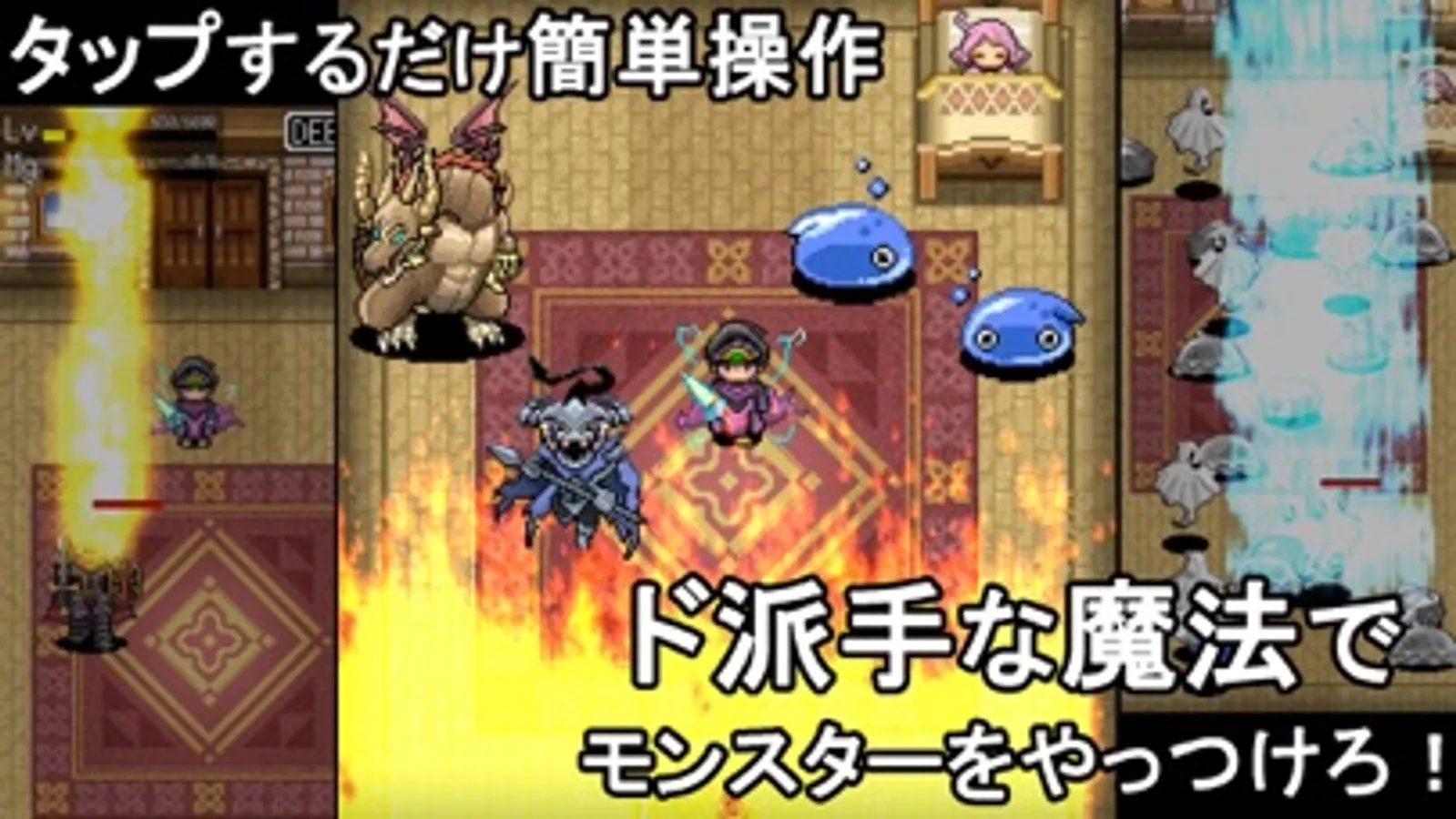 サクサク遊べる簡単操作RPG!放置している間に集まるモンスターをタップで倒していきましょう!暇つぶしにも最適です!