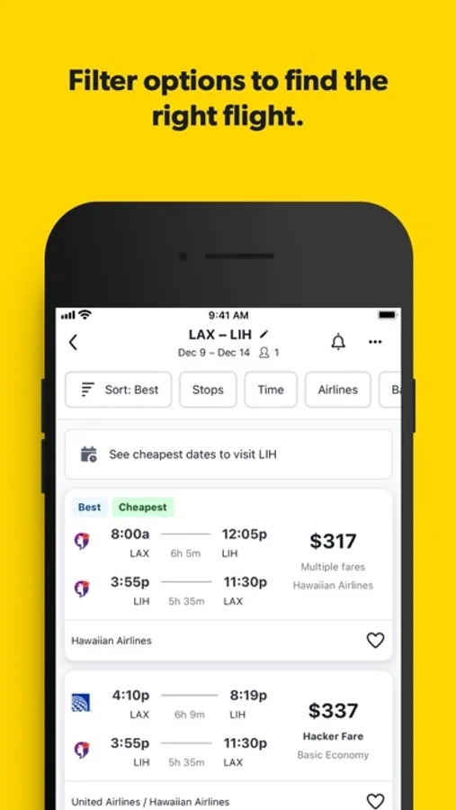 • See only options that fit your price range, airport, airlines, number of stops, take-off and landing times.