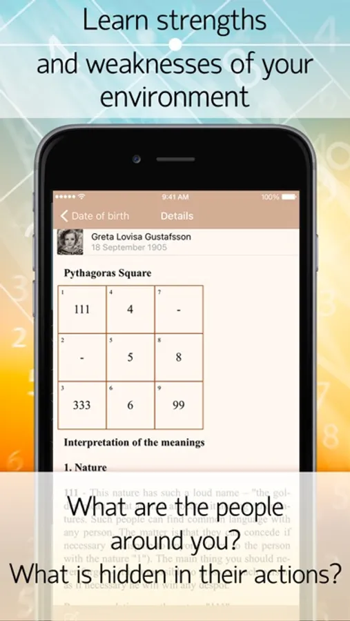 How to decrypt and see what awaits you? App «Numerology Free» contains the best traditions and the most accurate tests to check your destiny! Today’s technologies allow to look into the essence of the things occurring around you and touch the existence in a few clicks.