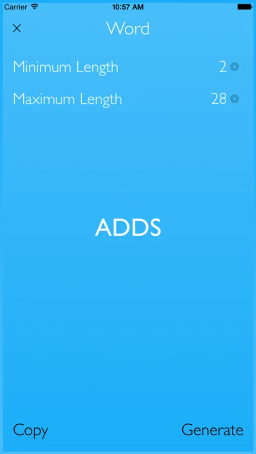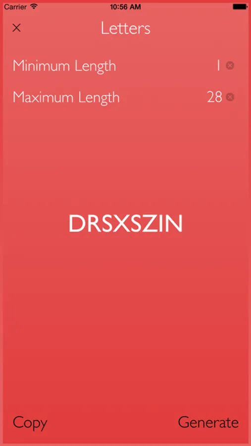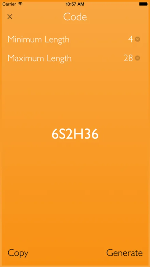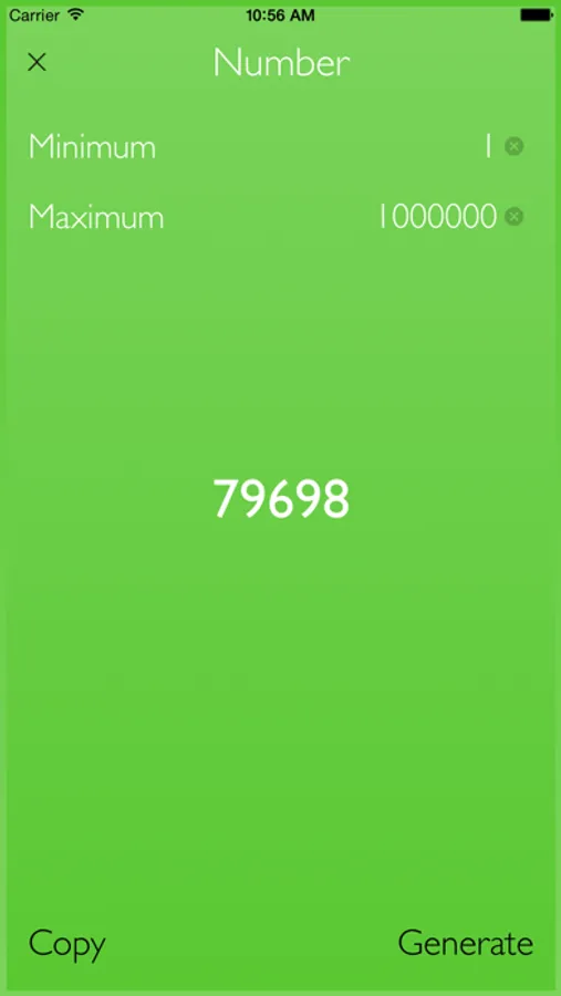 Arbitrary generates random numbers, letters, words, and codes at the tap of a button. The minimum and maximum length can be easily controlled. After generation, the value can be copied to the clipboard for easy access in another app.