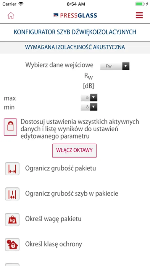 Aktualna wersja aplikacji pozwala na zarządzanie deklaracjami właściwości użytkowych dla wyprodukowanych zamówień, łatwy dobór zespoleń akustycznych za pomocą ustawionych wymagań oraz konfigurację i wizualizację sitodruku na podstawie wybranego wzoru i koloru.