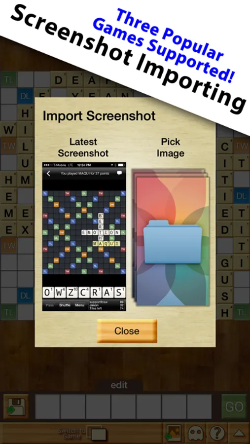 - Wow! Screenshot Importing supports Words with Friends, Scrabble Go, and Wordfeud! Even New Words with Friends is supported!
