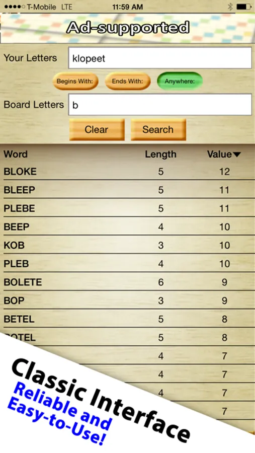 - Honest! We give you *all* of the results. We will never hide the best scoring words from you.